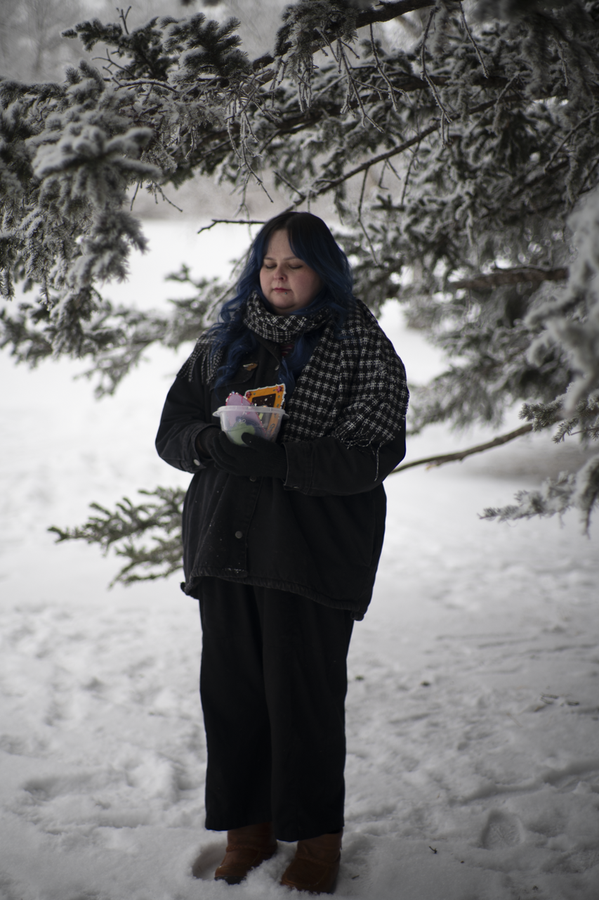 Jasmine Piper is an emerging artist, curator and arts administrator in Mohkinstsis, with family ties all across the prairies from Cold Lake First Nations to Peace River County. She aspires to be a better drum maker, hide tanner, fisherwoman, and bead artist. Her artwork includes researching decolonization through material exploration and experimentation, and exploring reconnection to her Nehiyaw and Métis ancestors by connecting with the supernatural. Aliens, magic, and medicine are common themes played with throughout her work.